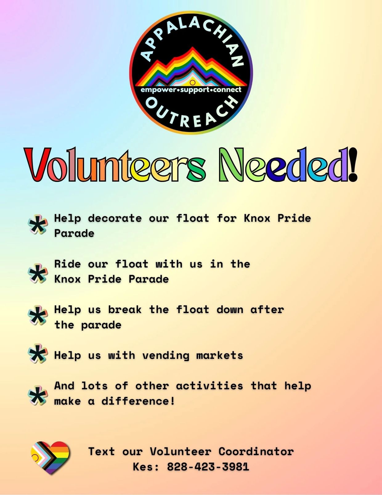 Empower, Connect and Support all East Tennessee lesbian, gay, bisexual, transgender, queer, intersex, asexual (LGBTQ+) people